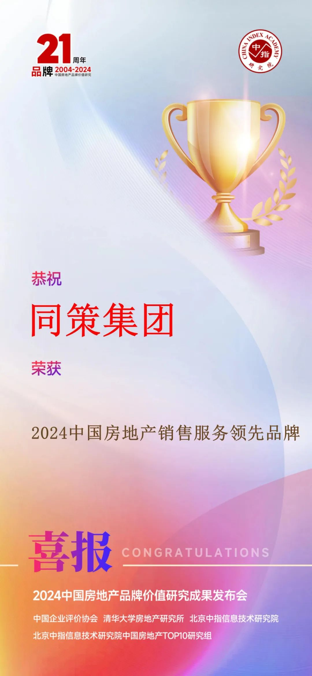 同策集团荣膺 ”2024中国房地产销售服务领先品牌”称号
